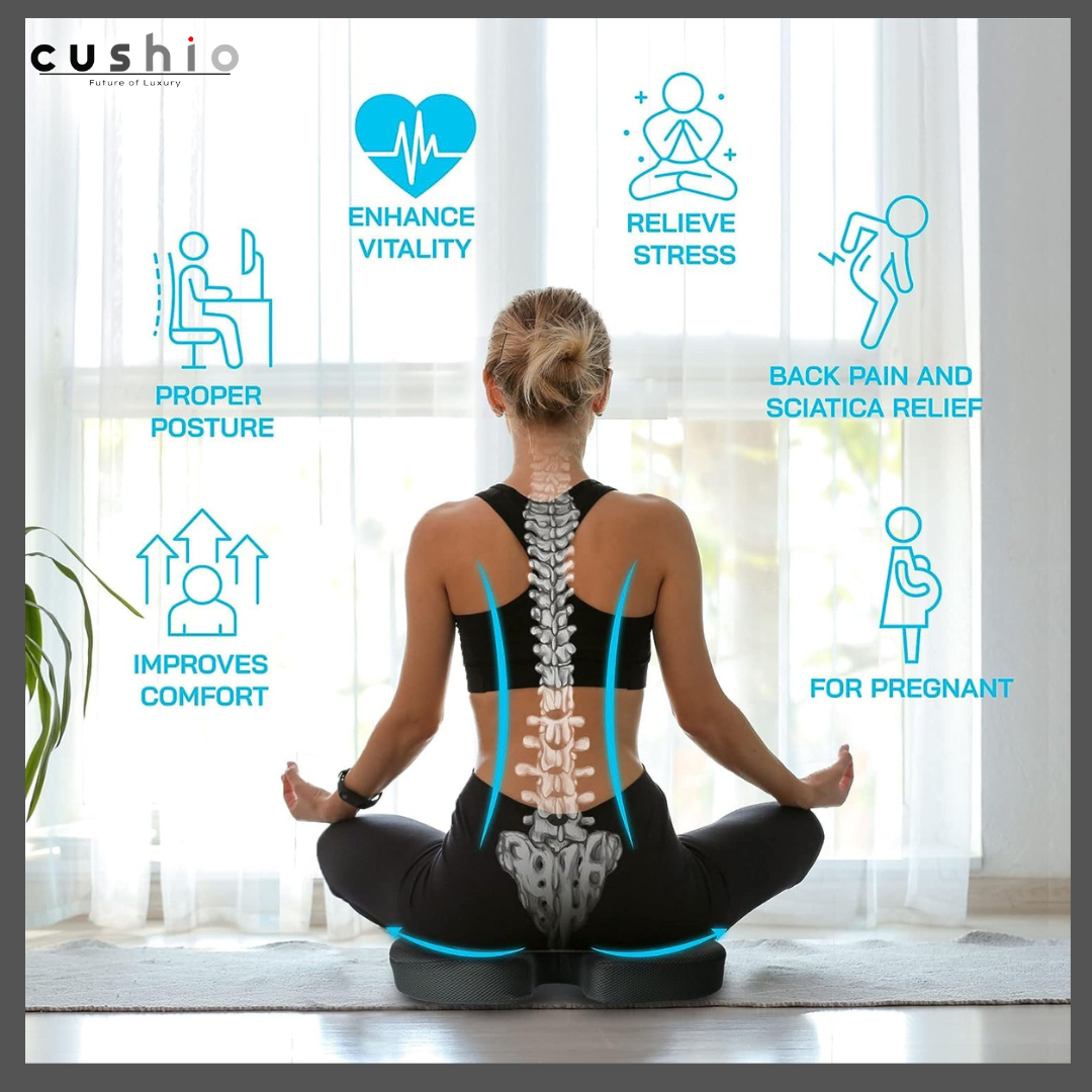 • Ergonomic Design: The contoured shape of our cushion promotes healthy posture by supporting the natural curve of your spine. Whether you're sitting at your desk, driving in your car, or relaxing at home, our cushion encourages proper alignment, reducing strain on your back and hips.