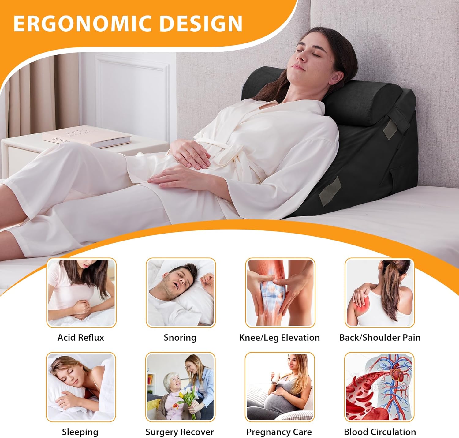 • Ergonomic Back & Neck Support: The wedge pillow provides adjustable incline levels to help relieve back pain and improve posture while sitting or lying down.